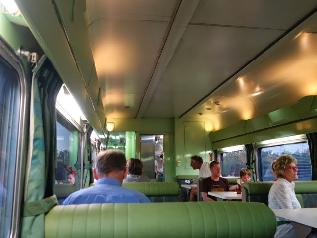 Back on the train, this is the Matilda restaurant car where we Red service passengers were allowed to sample the delights of the Ghan's meal service, or just enjoy a beer or wine as the passing land changed slowly from verdant green to rust red.
